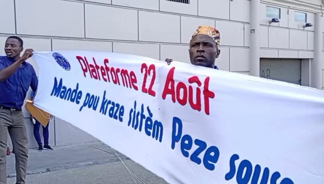 Des membres de la Plateforme 22 Août ont organisé un sit-in devant les locaux de l’Organisation des États Américains à Pétion-Ville dans la matinée du jeudi 5 mars 2026 afin de dénoncer la gestion politique actuelle du pays.